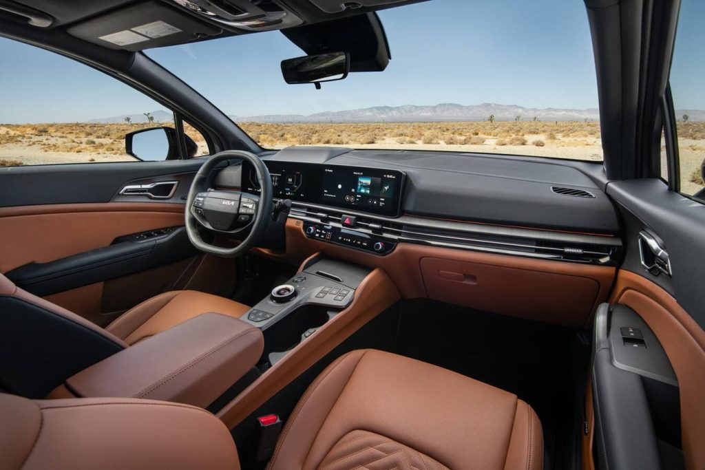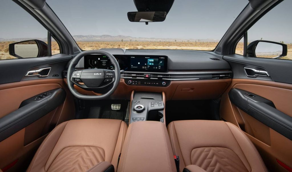 El Sportage híbrido incluye un cuadro de instrumentos digital de 12,3 pulgadas (31 centímetros) y una pantalla táctil de infoentretenimiento de 12,3 pulgadas juntados en una única pantalla curva panorámica. Este diseño tiene un aspecto nítido y moderno y le confiere una elegancia que no esperaríamos de un automóvil con un precio ligeramente superior a los $30,000 dólares.