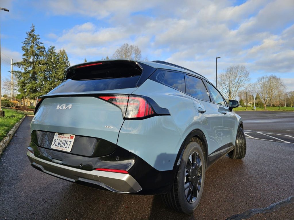 Los asientos delanteros del Sportage con calefacción y ventilación me parecieron muy cómodos, con un amplio espacio para la cabeza y las piernas, y encontré mucho espacio también en el asiento posterior. No solo es amplio para los pasajeros, pues el espacio de carga, aunque se ve reducido por la batería, sigue siendo bastante amplio, con 39,5 pies cúbicos de capacidad tras los asientos traseros, uno de los más generosos entre los SUV competidores.